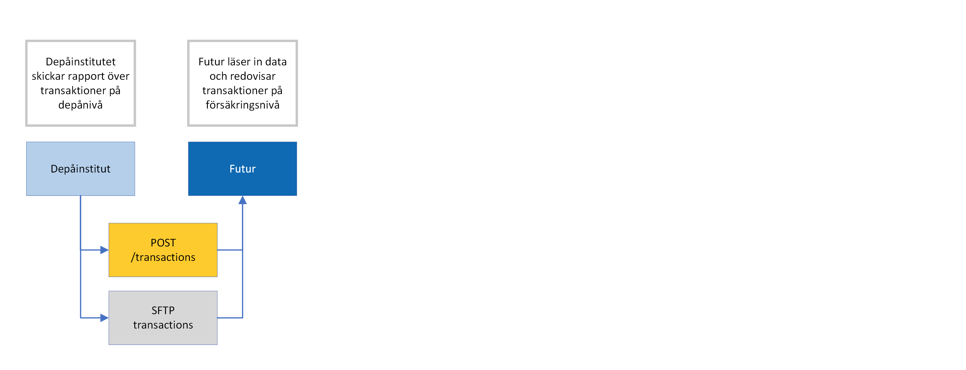 Depåinstitut ska löpande rapportera transaktioner på respektive depåkonto till Futur. Detta görs senast klockan 8:30 varje bankdag, med API-metoden: