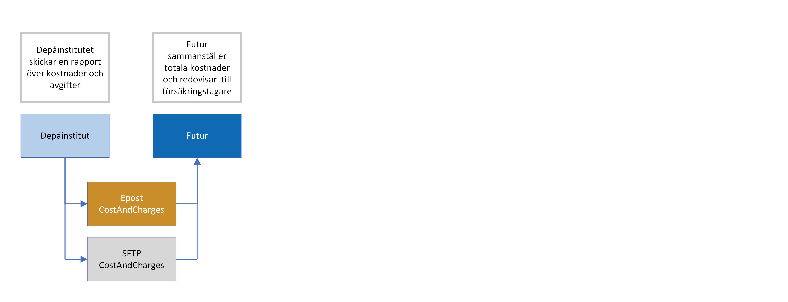 Utöver den dagliga rapporteringen, av Innehav och Transaktioner, behöver Futur information om alla kostnader och avgifter som debiterats respektive depå samt eventuella tredjepartsersättningar depåinstitutet mottagit. Denna rapportering sker en gång per år under perioden mars-april.