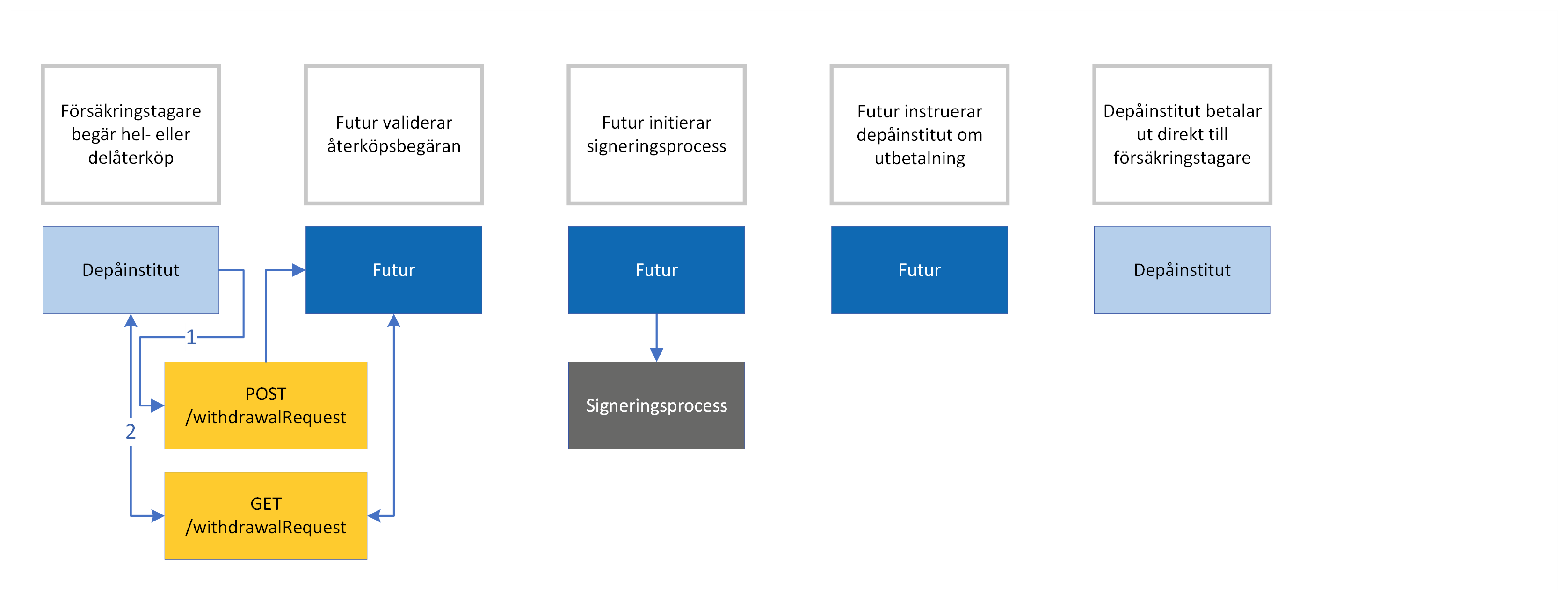 Nedan beskrivs processer för att genomföra återköp. Återköp kan göras via tredjepartsgränssnitt, via Futurs eService eller manuellt via pappersblankett.