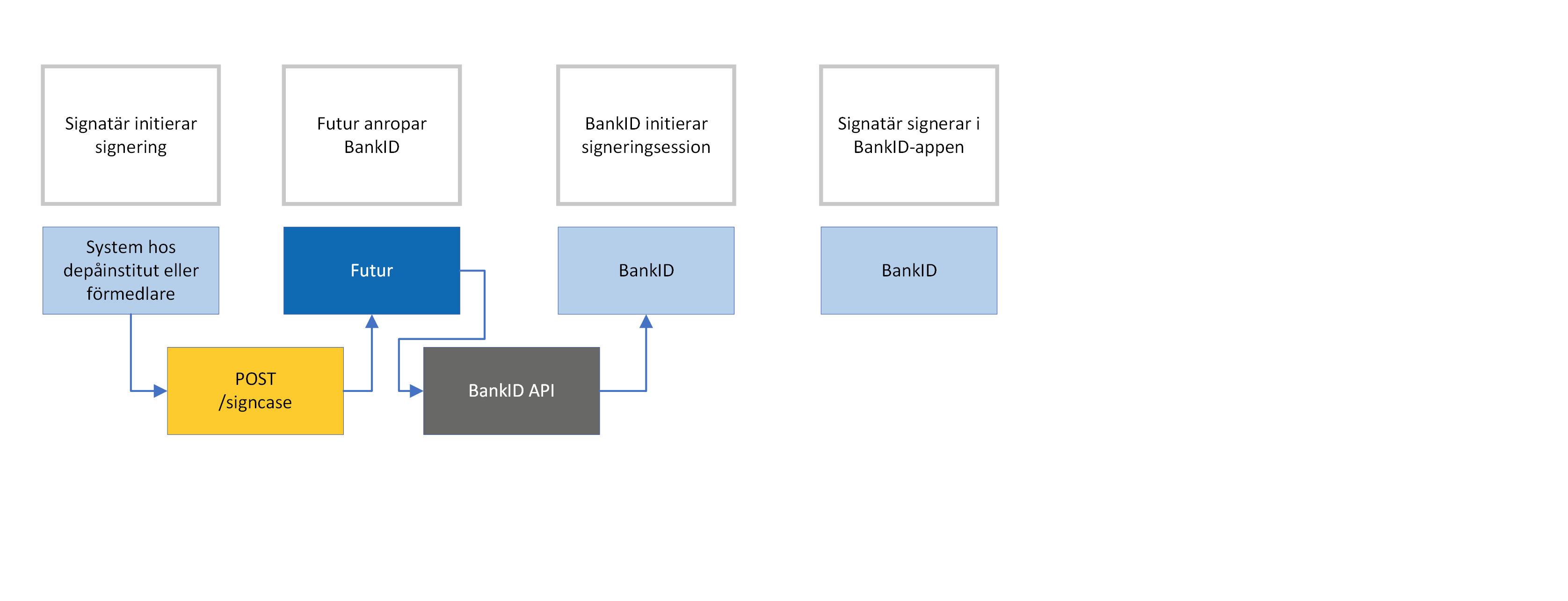 Signering kan initieras via användargränssnitt hos depåinstitut eller förmedlare, eller i Futurs användargränssnitt. Om signatären, eller signatärerna, signerar i Futurs användargränssnitt, så behöver ni som depåinstitut eller förmedlare inte göra något ytterligare.
